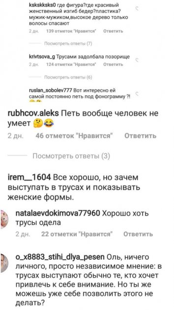 Безусловно, Олю всегда критиковали, но она смогла далеко пройти, даже засветилась в Кремле, гастролирует по России и развивает свой бизнес. Но к сожалению, Ольга решила завоевать Олимп напором, напрочь забыв о главном качестве. Зрители ценят не только яркие хиты, но и вокал, шоу, исполнение и открытость артиста. Ольга же будто стесняется петь вживую – даже в своих Stories она не осмеливается продемонстрировать «силу» своего голоса, понимая, что безумное желание не сделает из необразованной звезды вторую Монтсеррат Кабалье.