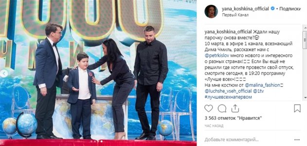 Яна Кошкина добралась до главного «женатика» страны на Первый канал благодаря шоу «Лучше всех». Именно под прикрытием заботы о подрастающем поколении Яночка нагнулась, чтобы вручить мальчику награду. Ух как неловко получилось, ведь несмотря на формат шоу и его цель, Яна не постеснялась в брючном костюме подчеркнуть свою грудь. Такое поведение Яны не все поняли, ведь мальчик несовершеннолетний стал свидетелем сцены 18+. С другой стороны Кошкина ничего противозаконного не сделала, просто решила отличиться.
