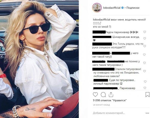 Фанаты заподозрили, что Лобода неверна Тиллю Линдеманну, или пара просто рассталась. Светлана могла не выдержать таких отношений, ведь за год Тилль так и не сделал ей предложение. Как написали вкомментариях, Лобода «спалилась» на татуировках, ведь таких изображений на теле Тилля нет. Быть может, она начинает жить заново, но уже без немецкого исполнителя.