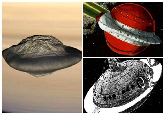Стоит отметить, что впервые о космической станции на орбите Сатурна заговорили ещё в 70-х. В научно-фантастических журналах того времени были опубликованы рисунки космического корабля пришельцев, со 100-процентной точностью повторяющие форму Пана.