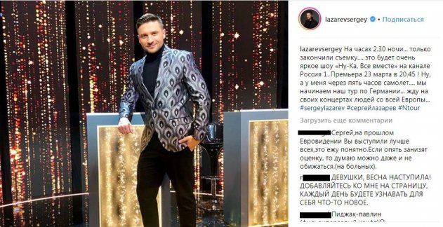 Недавно Сергей Лазарев опубликовал фото со съемок передачи «Ну-ка, все вместе». Большинство людей заметили в чем одет певец. Действительно, он появился на публике в странном пиджаке с ярким принтом. Обычно Лазарев выбирал более сдержанную одежду, преимущественно черного цвета. После того, как Филипп Киркоров начал усердно им заниматься, его внешний вид стал меняться до неузнаваемости. Правда, нельзя сказать, что в лучшую сторону.