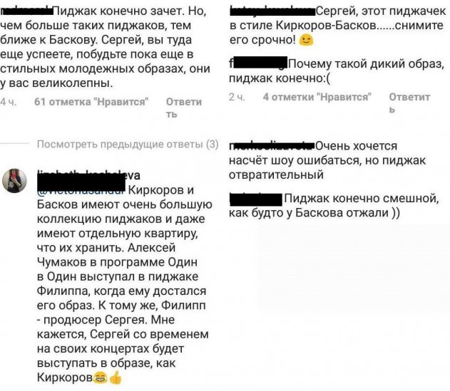 «Как будто у Баскова отжал», – в комментариях Лазарева сравнили «натуральным блондином», который также любит все блестящее и броское. Концертные наряды Киркорова не менее экстравагантные, поэтому бедный Сережа просто не знает что делать, когда над его имиджем поработали специалисты Фила.