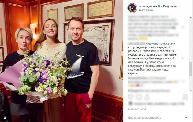 История самая обычная как для богатой и влиятельной, так и для бедной семьи – жена, увлеченная заботами о ребенке и работой, быстро стареет, а ее муж тем временем заглядывается на более «сочных» и молодых красоток. Дмитрий Песков человек очень скрытный, о проблемах или разводе с женой он не говорит, да и нет неопровержимых оснований полагать, что он уже нашел пассию помоложе. Однако Сеть то и дело пестрит его общими фото с весьма привлекательными женщинами, которые как раз моложе, чем его законная жена.