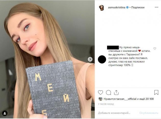 Пользователь соцсети увидел, что стриптизер и муж Наташи Королевой Тарзан тоже не смог устоять перед умной и красивой актрисой, и, возможно, именно поэтому лайкает все ее фото. К слову, старшему поколению это сложно понять, но именно посредством лайков в социальных сетях в двадцать первом веке мужчины и женщины ухаживают друг за другом. Внимание и оценки «мне нравится» в соцсетях ценятся почти так же, как и внимание в реальной жизни, поэтому поклонники Асмус и думают, что Тарзан «положил глаз» на актрису. Сама она тоже подписана на мужа Королевой, но стриптизер вниманием Асмус пока не сильно избалован – она даже не оценила его последнее фото с голым телом.