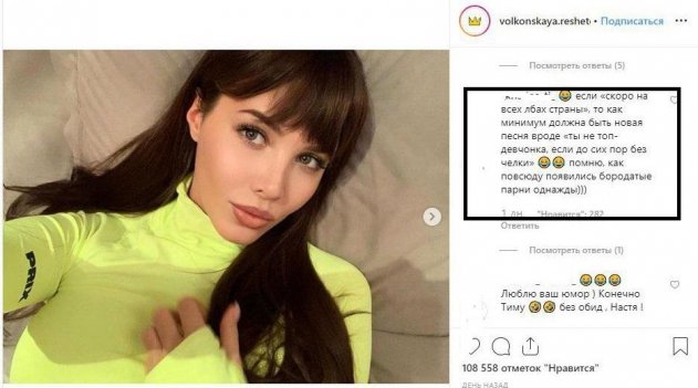 Не так давно девушка известного рэпера Тимати Анастасия Решетова сменила стиль, как уже у модели появились «последователи». И хотя Анастасия сделала себя накладную прямую чёлку, однако, волна негатива со стороны фанатов не заставила себя ждать. Судя по всему, с поддержкой решил выступить возлюбленный Решетовой. Тимати сделал снимок, где позирует с накладной чёлкой Анастасии. Полученное фото в своем Instagram показала его возлюбленная.