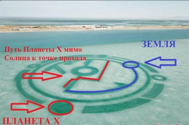 Сообщается, что на ледяном кругу в Китае изображено прошлое, настоящее и будущее. Изображение намекает на историю о Нибиру. Примечательно, что уфологи говорят о встрече с этой мистической планетой ещё в 2003 году, когда по странным обстоятельствам планета людей отодвинулась в прошлое на 5 месяцев, а орбита буквально приостановилась. Ввиду этого в Солнечной системе главными «игроками» признали Венеру и неизвестного «чёрного двойника».