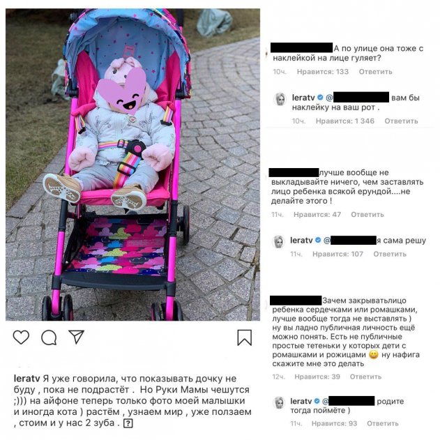 Но когда поклонники пристыдили Кудрявцеву за «наклейку» на лице дочери, та быстро всем заткнула рты. «Родите, тогда поймете», - посоветовала звезда одному из комментаторов, а другим захотела наклеить наклейку на рты.
