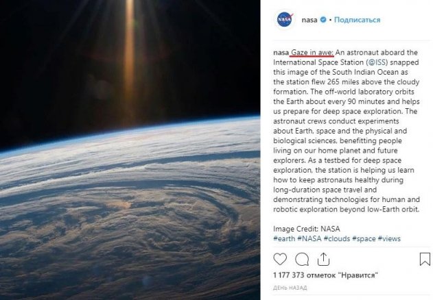 Астронавт NASA сделал фотографию южной части Индийского океана с борта Международной космической станции, на которой видна планета Нибиру.