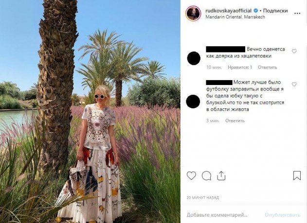 На отдыхе за границей поклонники и заметили то, как сильно изменился стиль звезды – теперь богиня моды выглядит, как «доярка с Хацапетовки», и, судя по всему, фанаты уже не в первый раз замечают провальные образы Рудковской. Собственно, если Яна Рудковская перестала следить за собой из-за возможного развода с мужем, то это и понятно – продюсер, наверно, отчаянно борется с депрессией с помощью компании друзей и путешествий, ей сейчас все равно на собственный внешний вид.