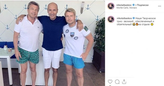«Наше Творческое трио: великий, обеспеченный и обаятельный…на отдыхе», – отметил Николай прямо с Монте-Карло, обзывая так Льва Лещенко, Игоря Крутого и себя.