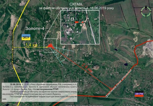 Черговий обстріл здійснений приблизно чотирнадцятої години 18 червня. Російсько-окупаційні війська з напрямку Золоте-5 обстріляли населений пункт Золоте-4, застосувавши ПТРК. На місці обстрілу, лише в тридцяти метрах від житлового будинку, утворилася велика вирва від розриву протитанкової керованої ракети. На щастя обійшлося без жертв.