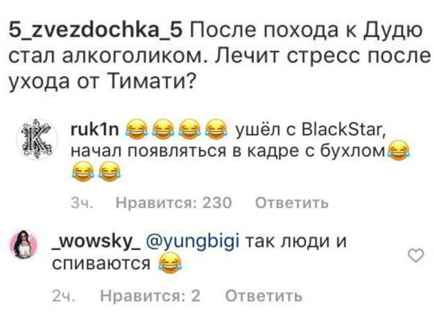 Стоит отметить, что фото Егор подписал: «Когда вспомнил, что у тебя завтра юбилей». На снимке лицо Булаткина не выглядит счастливым, а даже напротив. Неужели певец до сих пор не может пережить уход из Black Star? После прекращения сотрудничества с лейблом фанаты часто отмечали, каким Егор стал замученным и уставшим, а на его лице появились морщины и синяки под глазами. Видимо, алкоголь уже дает знать о себе и зависимость становится видна на лице.