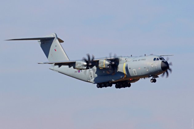 Вскоре приземлился четырехмоторный турбовинтовой гигант А400 Atlas ВВС Великобритании. Он доставил бойцов морского спецназа Соединенного Королевства. Самолет взлетел с базы RAF в Брайз Нортон и привез бойцов Special Boat Service — «Особой лодочной службы». Британцы всегда берут с собой полный запас оборудования, снаряжения и провианта, включая питьевую воду, на все дни учений.