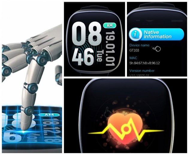 Это не только водонепроницаемое устройство, но еще личный ассистент и тренер в одном браслете. Он оснащен тонким металлическим корпусом (9,5 мм), который предоставляет уровень защиты IP67 по стандарту. В его дизайне нет ничего лишнего, а 2,5D-стекло покрывает 1,3-дюймовый сенсорный IPS-дисплей. Как в любом другом «умном» гаджете, в GT103 есть датчик сердцебиения, расположенный на внутренней стороне браслета.