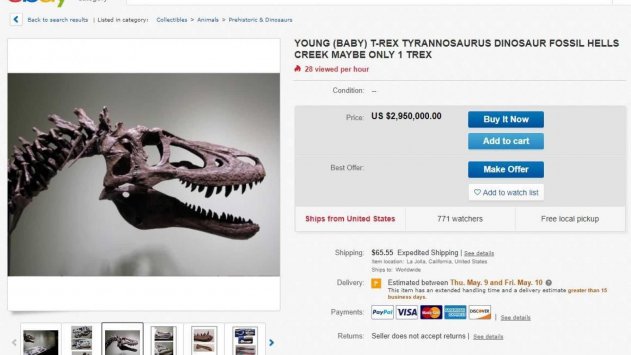 На американском аукционе eBay можно купить абсолютно всё. Исключением не стали даже останки детёныша тираннозавра Рекс, которым около 68 млн лет.