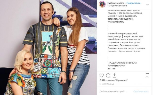 Недавно Володина придумала новый способ зарабатывать деньги. «Никакой в мире кредитный калькулятор не расскажет вам, какой будет ваша жизнь после получения кредита. А астролог расскажет», – именно с этими словами она обратилась к фанатам. Неужели женщина стала наживаться на бедных? Новые рекомендации рассчитаны на малоимущих людей, которые никак не могут решиться взять кредит. Володина обещает, что поможет принять решение, но никто не даст гарантию, что после таких советов человек не попадет в «долговую яму».