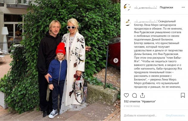 По словам Мироненко, Яна специально придумала «роман?» с Димой Биланом, чтобы напомнить о себе и опровергнуть слухи о нетрадиционной ориентации певца. Ведь в случае, если Дима сделает каминг-аут он потеряет основную часть своих поклонников, а, следовательно, и большую часть не только своего заработка, но и Рудковской. «И питомца отмажет, и себя похвалит», — заявила блогер, а также отметила, что Рудковская до сих пор беспокоится о своей привлекательности, не желая принимать свои возрастные изменения.