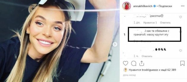 «Абсолютно неважно кто ты и как ты выглядишь... ведь ты сегодня надеваешь маску... ты безликий.... растворяешься в Доме Алвингов, вдыхаешь его ароматы и держишь артиста за руку...», — пишет в комментарии актриса. Стоит отметить, таким «обращением» Хилькевич буквально шокировала фанатов безликим творчеством. Примечательной стала серия снимков, где Анна позирует с белой маской в руках, неоднозначно кривляясь на камеру. Фанаты такое «творчество» Хилькевич не оценили, отметив поведение материи двоих детей, «как обезьяна с гранатой».