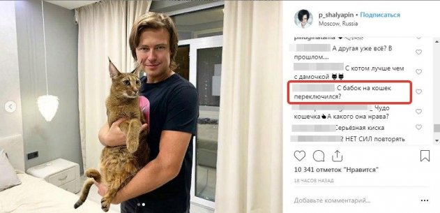 А некоторые в шутку подметили, что Прохор с женщин переключился на животных: «С бабок на кошек переключился?», «А Виталина уже всё? В прошлом?», - пишут пользователи.