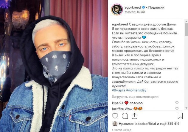 Недавняя шумиха вокруг «гейской» причёски Егора Крида, которую тот как бы невзначай сделал аккурат 8 марта, получила неожиданное продолжение. Опубликованная ранее новость, равно как и массовый народный гнев в комментариях, очевидно, вынудили Булаткина стереть пост с безобидным на первый взгляд поздравлением.