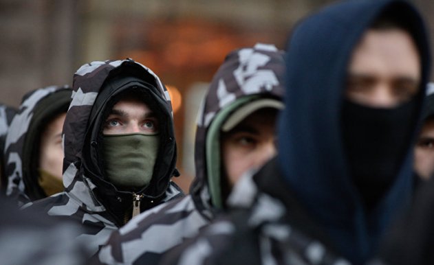 © РИА Новости, Стрингер | Перейти в фотобанкАкции националистов в КиевеАналитики говорят, что сила этих групп основана главным образом на слабости украинского государства, образовавшегося после Майдана, а скорее на его нежелании обеспечивать правопорядок, когда речь заходит о бесчинствах ультраправых. Отчасти это может быть связано с той ролью, которую ультраправые бойцы сыграли во время восстания против бывшего президента Виктора Януковича на Майдане, когда они выступали как организованные защитники лагерей протестующих, а иногда и инициировали атаки на полицию.