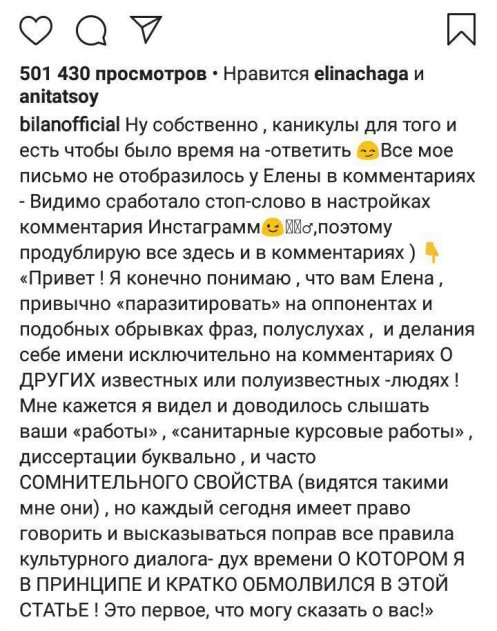 Люди часто замечали его орфографические и пунктуационные ошибки и даже делали ему замечание, однако, каждый новый пост это новые ошибки. Билан неисправим и с этим нужно смириться.