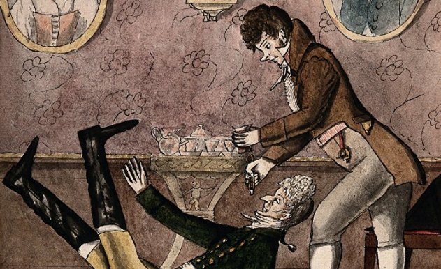 У дантистов-шарлатанов длинная и богатая история. В средневековой Европе цирюльники не только стригли волосы и брили бороды. Они также выполняли функции хирургов, делая такие мелкие операции как кровопускание, промывание желудка и удаление зубов. Цирюльники-хирурги, становившиеся «зубодерами», выкручивали, вырывали и вытягивали зубы из человеческих ртов устрашающими металлическими инструментами, носившими название зубной ключ. Представьте себе чудовищный крюк, молоток и щипцы. В 18 веке «зубной оператор» короля Георга III Томас Бердмор (Thomas Berdmore) рассказывал о женщине, которую местный цирюльник лишил «куска челюстной кости размером с грецкий орех и трех соседних коренных зубов».