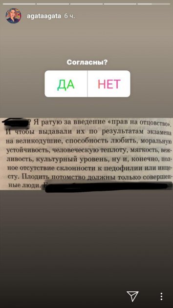 Недавно актриса опубликовала со своей страницы очень яркую цитату о том, каким должен быть родитель. «Плодить потомство должны только совершенные люди», - пишет некий автор, и. видимо, Муцениеце пришлись эти слова по душе. Вероятно, месть за возможные побои актрисы мужем ждать себя долго не заставит, и Агате действительно хватит решительности на развод и длительные судебные тяжбы об опеке над детьми.