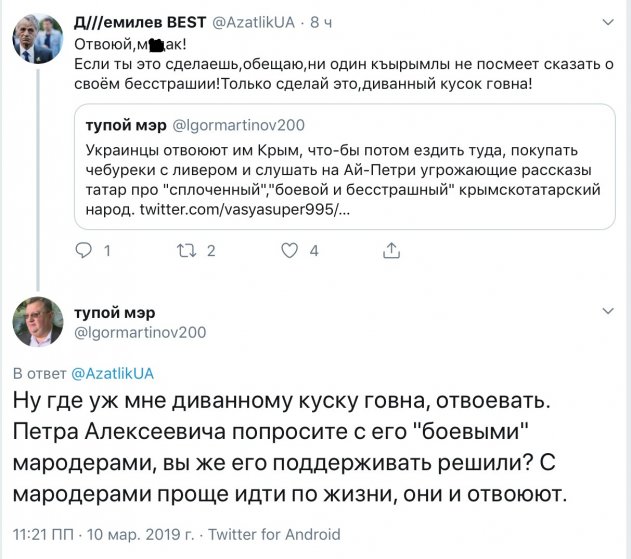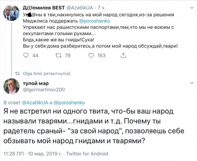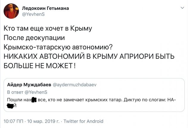 Вы будете смеяться, но в твиттере опять развернулись нешуточные баталии. На этот раз между собой воюют представители Меджлиса*, заявившие о своей поддержке на предстоящих выборах Порошенко, и теми, кто внезапно понял, что Йоговысокоповажнисть оказался гораздо хуже своих «папередников».