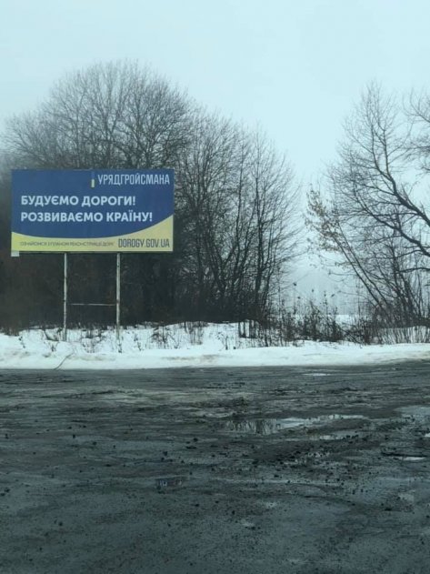Как на самом деле обстоит дело, наглядно демонстрирует хвастливый билборд с заявлениями Гройсмана о строительстве дорог, установленный в городке Жмеринка на фоне такой, с позволения сказать, дороги.