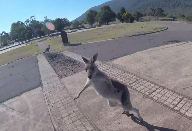 Житель Австралии Джонатан Бишоп (Jonathan Bishop) летал на параплане в районе Канберры около двух часов, а затем стал присматривать площадку для приземления. До последнего он не замечал, что на земле находятся два кенгуру, и тем более не предполагал, что это может быть опасно.