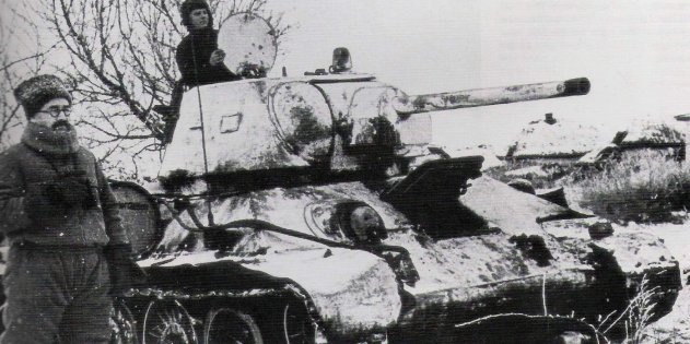 Павел Ротмистров у танка Т-34 Донесение, в общем, было по сути верное, но поскольку про свои потери Ротмистров толком не написал (возможно, в тот момент он их сам точно не знал), то на Ивана Степановича Конева эта записка от «школьника в очочках» — карандашом на трех листках в клеточку — подействовала, как плащ матадора на быка.