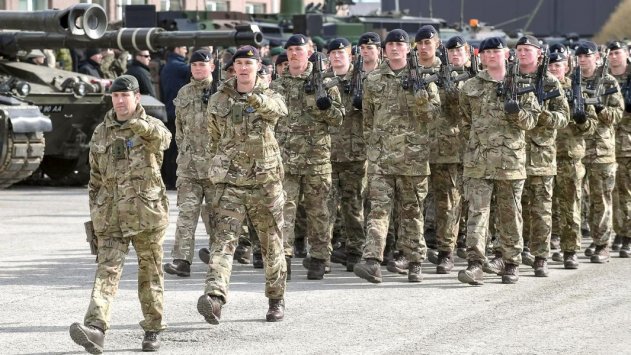 Британские солдаты на церемонии начала боевых действий группы батальона НАТО на военной базе Тапа в северной Эстонии