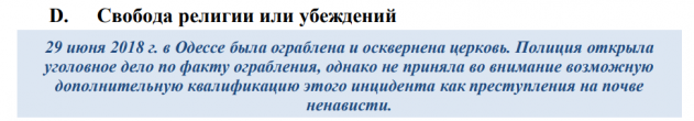 "В течение отчетного периода УВКПЧ задокументировало десять случаев угроз и актов запугивания в отношении священнослужителей и прихожан в отношении преимущественно Украинской Православной Церкви (Московского Патриархата)", - говорится в документе.