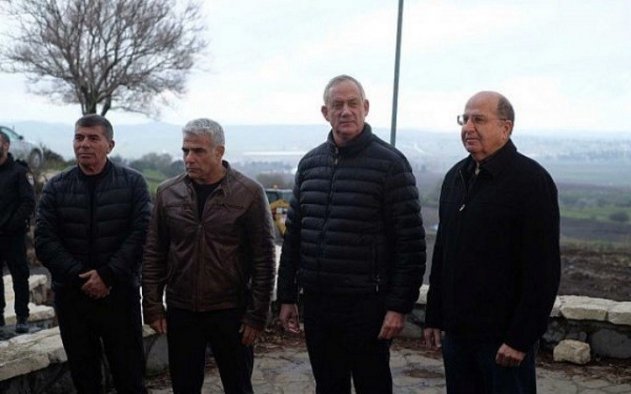 Габи Ашкенази, Яир Лапид, Бени Ганц и Моше Яалон (слева направо) в районе Голанских высот во время «клятвы» перед израильским народом За несколько дней до этого газета «Исраэль а-Йом» («Израиль сегодня») сообщила к удивлению многих, что в израильском силовом блоке выступают против принятия американского закона о Голанах. Согласно источникам газеты, «представители армейского генералитета и органов безопасности Израиля дали понять американским сенаторам, что закон нежелателен, по крайней мере в настоящее время». По аргументации военно-политического руководства Израиля, если верить источникам указанного издания, присутствие еврейского государства на Голанах является «фактом, который никто не ставит под сомнение, и им непонятно, в чём смысл закона США, поскольку он только оживит обсуждение этого вопроса».