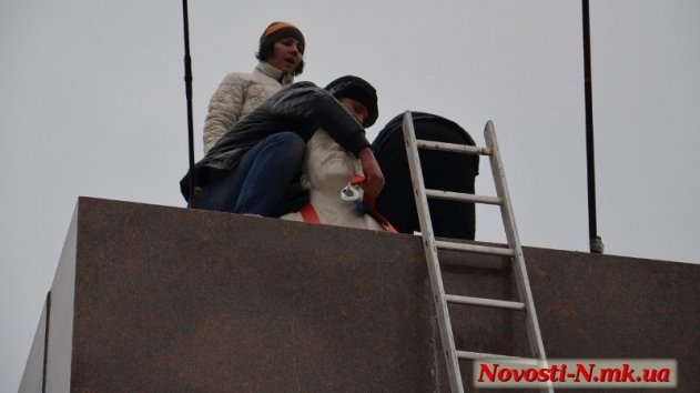В недавней статье Юры Барбашова «Территория одичалых: Они хотят иметь своих рабов» была фотография, на ней николаевцы вместо снесенного бандеровцами памятника, устанавливали бюст Ленина. Девушка на фото – это та самая Света.