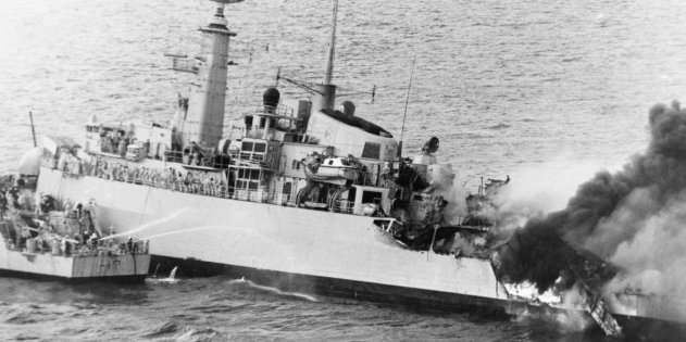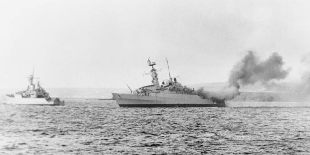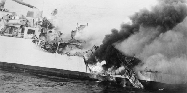 В итоге, когда пожар начал подбираться к погребу зенитных ракет, команда быстро покинула корабль. Выгорев и переломившись, он подарил нам одну из самых известных фотографий конфликта.
