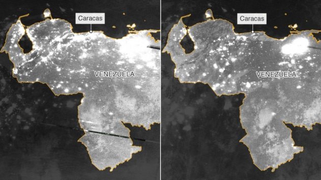 Последствия диверсии на электростанции "Эль-Гури" - вид из космоса. До и после. Сейчас ситуация несколько нормализовалась.