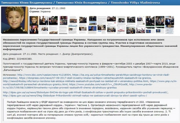 Вероятнее всего, это произошло тогда, когда Тимошенко помогала депортированному Михаилу Саакашвили вернутся на Украину. Впрочем, на этом инцидент не был исчерпан. Создатели сайта «Миротворец» обратились в генеральную прокуратуру Украины и в другие правоохранительные органы с просьбой внимательно изучить данную публикацию. Были высказаны опасения на предмет того, что Юлия Тимошенко сознательно совершила действие, которое вредит национальной безопасности Украины, мира, безопасности человечества и международного правопорядка.