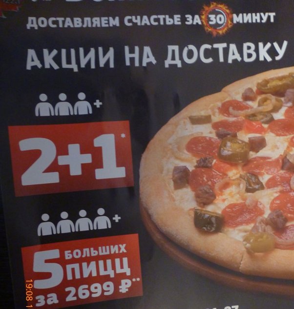 «Доставляем счастье за тридцать минут» — написано на рекламе доставки пиццы.