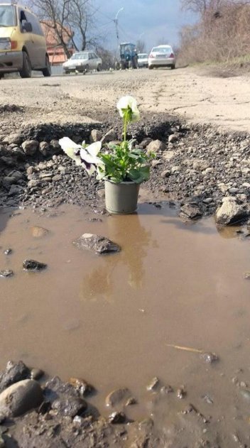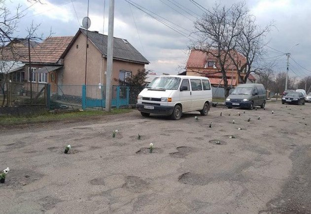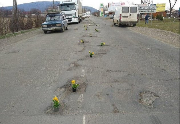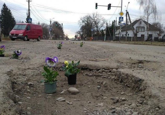 Однако местные жители решили самостоятельно устроить Петру Порошенко «радостный» приём. Как сообщают в местном издании «Голос Карпат.ИНФО», по возможным маршрутам следования кортежа Порошенко в дорожных ямах были установлены цветы в горшочках.