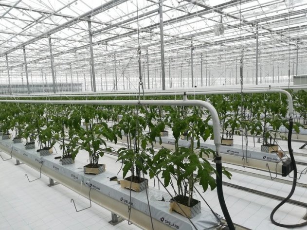 В этой современной теплице с круглогодичным выращиванием овощей АО «Тепличное» ежегодно планирует производить 950 тонн огурцов.
