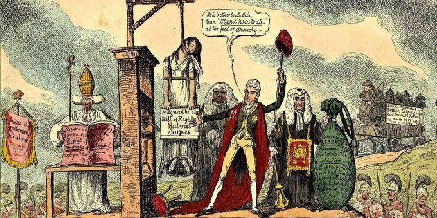 Сначала последовал парламентский акт, запрещающий любые организации, которые государство сочтёт мятежными. Затем в 1817 году магистратам дали право запрещать митинги. Действие знаменитого Habeas Corpus Act — одной из основ правовой системы Англии, — запрещающего арест без решения суда, временно приостановили.