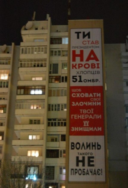Баннер на высотке в Луцке: «Волынь такого не прощает!»