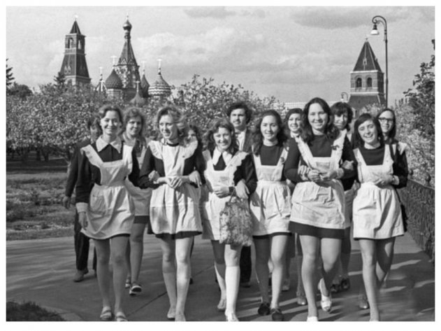 Эта девочка действительно очень красива, но совсем не похожа на тех выпускниц, которые прощались со школой 50 лет назад.