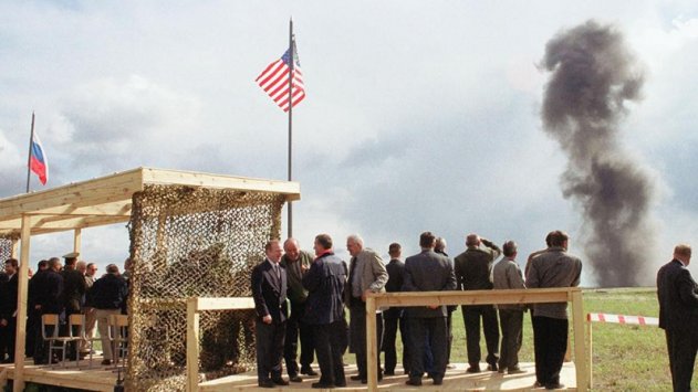 В рамках договора СНВ-2 подорвана шахта подземного базирования межконтинентальной баллистической ракеты РС-18, 2002 год