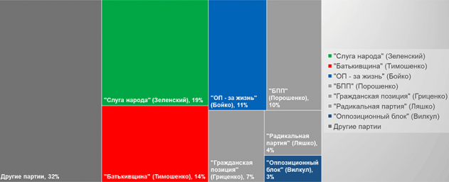 До первого тура президентских выборов на Украине остается менее двух недель. Тройка кандидатов, которые имеют наибольшие шансы занять главный пост, стабильна: Петр Порошенко, Юлия Тимошенко и Владимир Зеленский. Последний стал политическим феноменом 2019 года. О кандидате-актере разговор впереди, а пока разберемся, как президентские выборы могут повлиять на осенние выборы в Верховную раду и изменить политическую систему Украины. Игра без проигравших: кто не станет президентом, тот пойдет в парламент Украинские политологи сходятся во мнении, что большая часть кандидатов уже прекратила борьбу за президентское кресло. По словам Дмитрия Джангирова, неделя предвыборной кампании обходится штабу среднего кандидата в 100 миллионов гривен (3,28 миллиона евро). Поэтому сжигать деньги впустую нет смысла, когда тройка лидеров остается неизменной в течение последних 4–5 недель. Зеленский, Порошенко, Тимошенко По мнению политолога Михаила Погребинского, теоретические шансы выйти во второй тур еще остаются у кандидата от «Оппозиционной платформы — за жизнь» Юрия Бойко. Только связаны они в основном с возможными ошибками лидеров кампании, а не с действиями штаба оппозиционного кандидата. Однако снятие брони с рекламных пространств и эфирного времени не значит, что украинские политики прекратили борьбу. Совсем наоборот: они берегут ресурсы и готовятся к следующим выборам — парламентским. Каким будет новый парламент Украины? С большой долей вероятности выборы в Верховную раду пройдут в конце октября 2019 года по смешанной системе. 225 депутатов будут избраны по партийным спискам. Вторая половина — в одномандатных округах. Мажоритарные выборы на Украине — потемки. В них побеждают те, у кого есть деньги и связи. Ситуация в каждом из 200 округов индивидуальна. Поэтому оценить, кто получит на них депутатские мандаты и к какой партии впоследствии примкнет, пока что довольно сложно. Пропорциональная составляющая выборов — совсем другая история. 14 марта ЦСИ «София» опубликовал рейтинг украинских партий, согласно которому в парламент по партийным спискам войдет 5 фракций. Если бы выборы в Раду состоялись в середине марта, в украинский парламент прошло бы 5 партий (остальные не преодолели бы 5% барьер). Данные исследования Центра социальных исследований «София» (Украина), 14 марта 2019 года В исследовании «Софии» есть несколько моментов, которые необходимо отметить. Во-первых, рейтинг «Блока Петра Порошенко» существенно изменится, если Порошенко выиграет или проиграет президентские выборы. Обычно партия президента получает 25–30% мест по пропорциональной системе, а партия проигравшего президента — менее 6%, а то и вовсе не попадает в парламент. Во-вторых, рейтинг партии «Слуга народа» во многом обеспечен популярностью Владимира Зеленского. Взамен эйфории по поводу «новых лиц» в политике так же быстро может наступить полное разочарование. Более того, партия «Слуга народа» — по сравнению с «БПП», «Батькивщиной» и бывшими регионалами — обладает самой слабой партийной инфраструктурой на местах. Поэтому ей будет очень сложно продвинуть своих кандидатов в мажоритарных округах и защитить результаты голосования от фальсификаций. Партия Юлии Тимошенко «Батькивщина» войдет в парламент при любых раскладах и, в зависимости от успехов «Леди Ю» в президентс