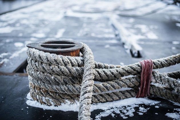 На швартовых концах — красные металлические круги. Это защита от крыс, перебегающих иногда по канатам с берега.