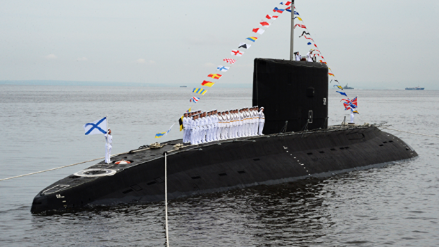 Дизельная подводная лодка класса «Варшавянка» во время парада кораблей, посвященного Дню Военно-морского флота России, во Владивостоке