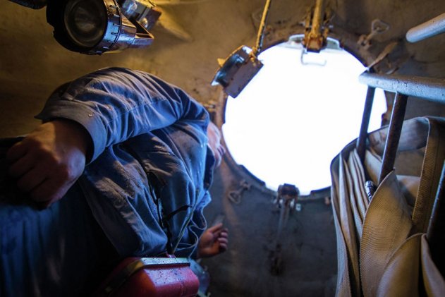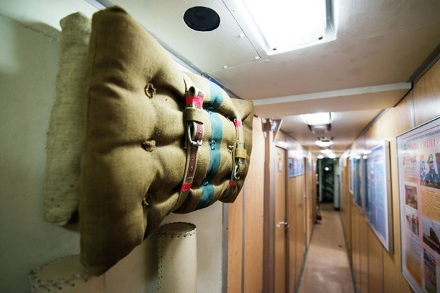Внутри всплывающей спасательной камеры подводного крейсера «Юрий Долгорукий»
